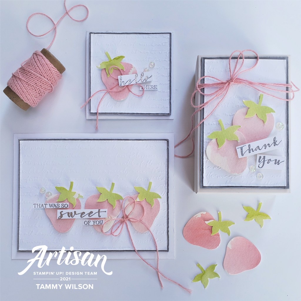 01.10.21…..Happy Sunday, everyone! Today, I’m sharing a mini tutorial for projects that I created with the Sweet Strawberry Bundle, from the brand new Stampin’ Up! January – June Mini Catalog! This new catalog is sooooo jam-packed with soooooo many amazing stamps sets, accessories, and more….and I know your wish list will be overflowing before you know it!