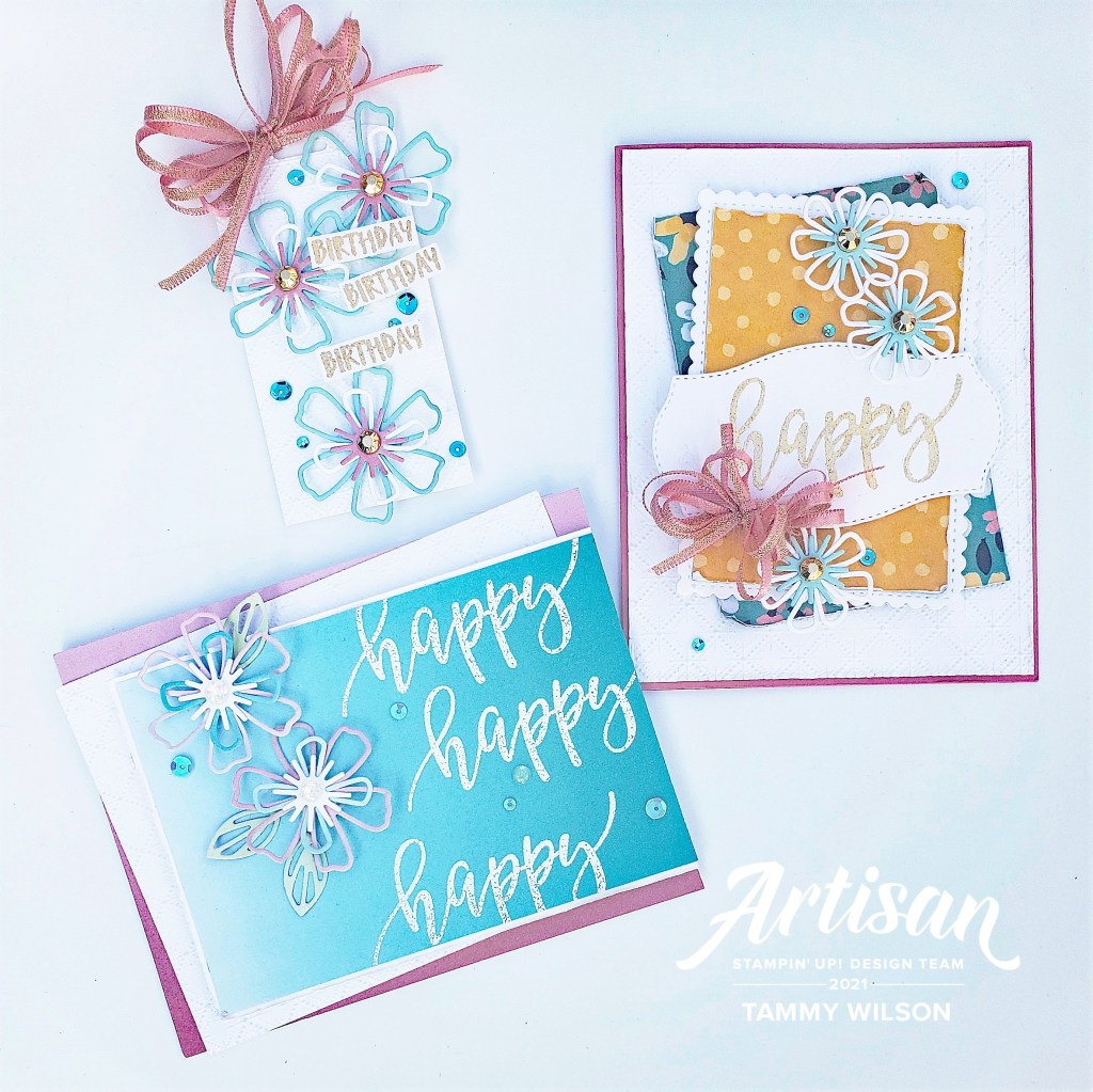 01.23.21…..Happy Friday, everyone! Today, I’m thrilled to share my first monthly showcase projects for the Stampin’ Up! 2021 Artisan Design Team! For this month’s projects, I was asked to use the Pretty Perennials Bundle (from the January – June Mini Catalog), along with the Oh So Ombre Designer Series Paper and the Flower & Field Designer Series Paper (both from the Sale-A-Bration Catalog).