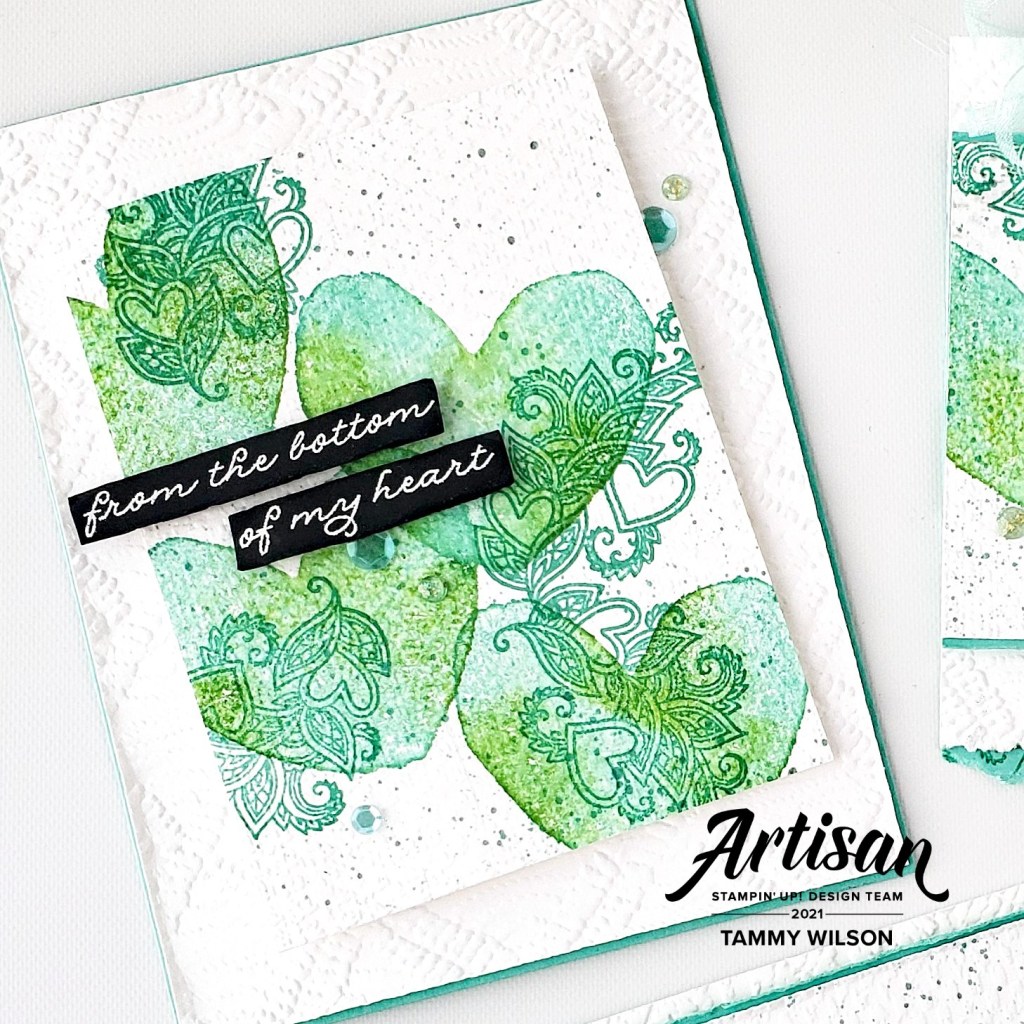 06.07.21…..Happy Tuesday, everyone! Today, I’m sharing a mini tutorial for projects that I recently created for the Stampin’ Up! Corporate Facebook Page, featuring the Henna Hearts Stamp Set, from the brand new Stampin’ Up! 2021-2022 Annual Catalog! To create the sentiments, I paired this stamp set with Ornate Thanks Stamp Set! This new catalog is sooooo jam-packed with soooooo many amazing stamps sets, accessories, and more….and I know your wish list will be overflowing before you know it!