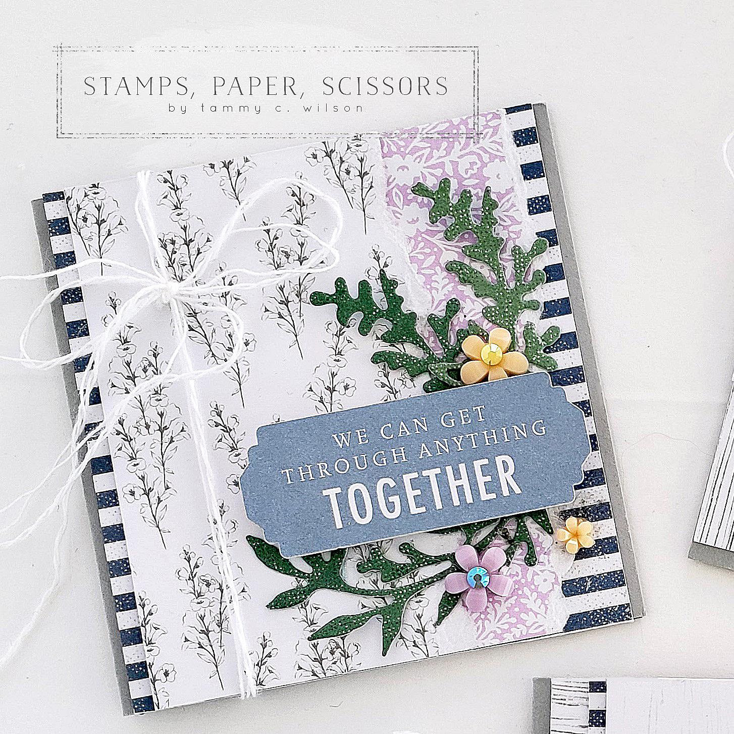 The sentiments were also created with the card pack as well. The “Life is Beautiful” sentiment was cut out from one of the cards. For the “Thankful for You” card, I used Everyday Label Punch to punch out the sentiment from another card. And…..for the “Together” sentiment, I used one of the cute little stickers from the card pack.