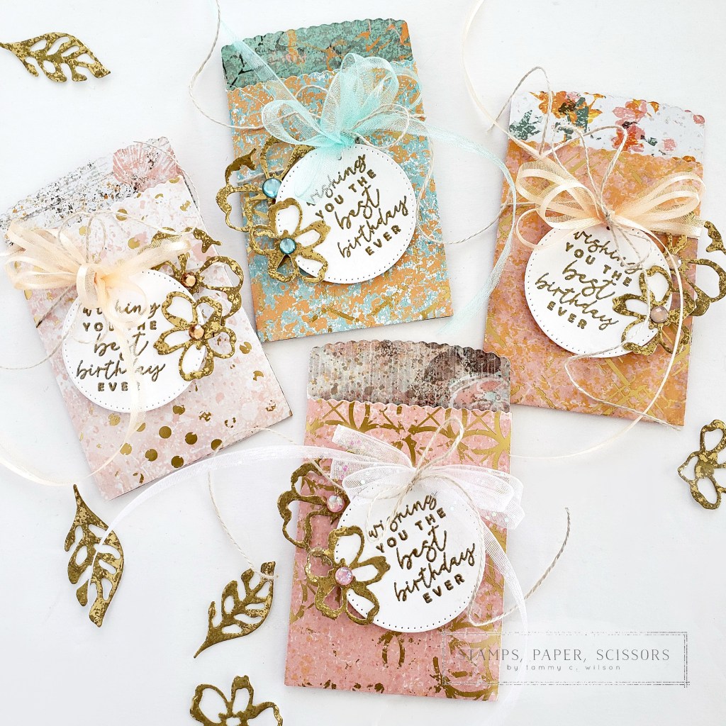 06.06.22…..Happy Monday, my stampin’ friends! Today, I’m sharing four little gift card holders, that I card that I created with the Texture Chic Suite and the Mini Pocket Envelope Dies, from the brand new 2022-2023 Stampin’ Up! Annual Catalog! There are soooooo many wonderful stamp sets, bundles, paper, and accessories, and…..it’s just jam-packed with creativity and inspiration! Hope this inspires you to create some fun, colorful gift holders for your friends, family, and anyone that’s celebrating their special day!