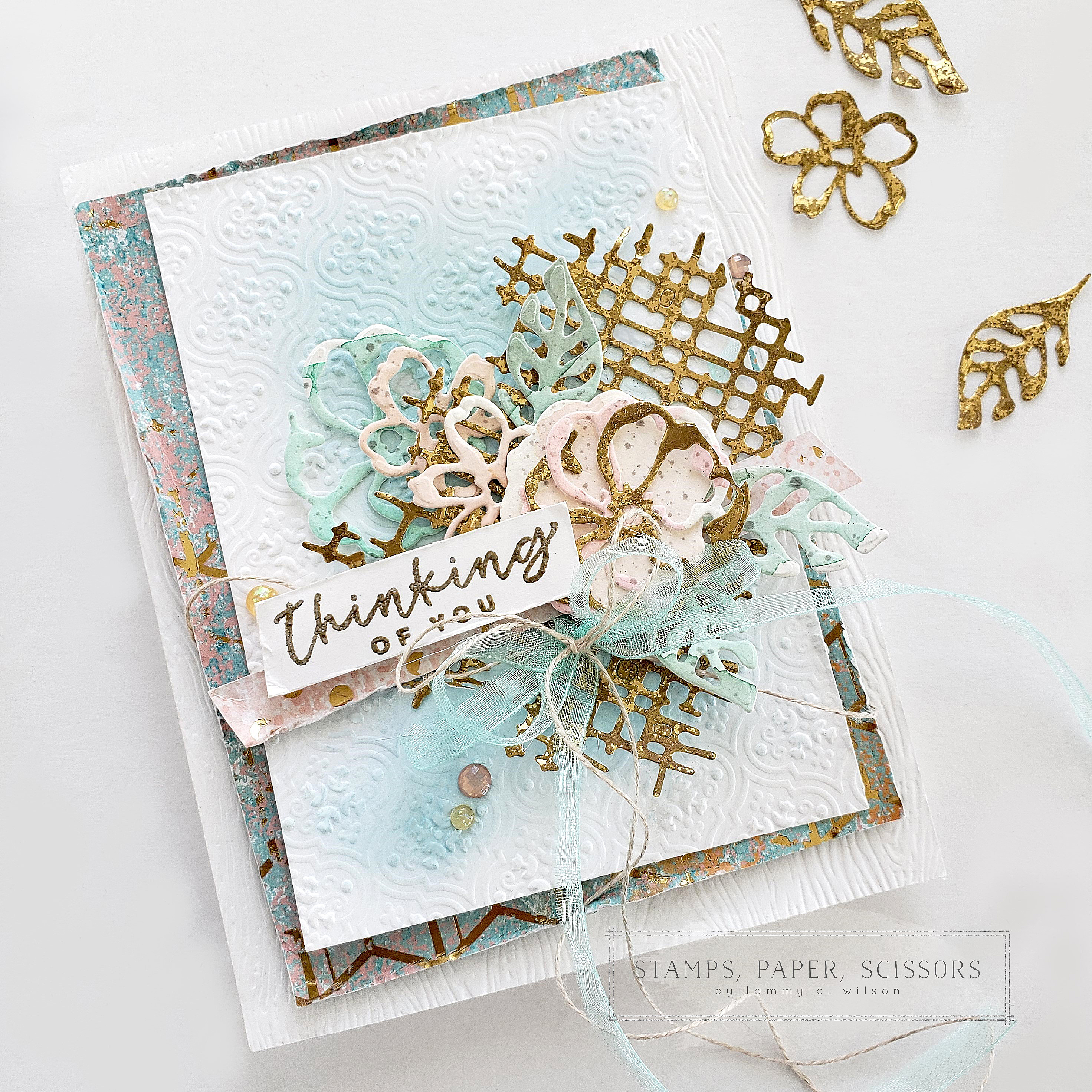I absolutely adore anything shabby chic, so when I saw the projects created on page 98, using the Texture ChicSuite, my heart was full of inspiration! This suite has such an amazing mix of images and colors, and also includes the gorgeous Distressed Gold Specialty Paper.