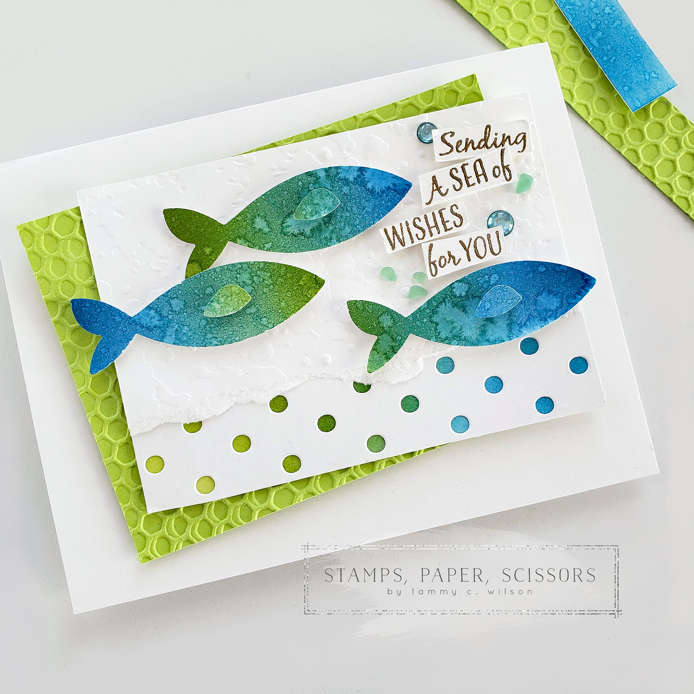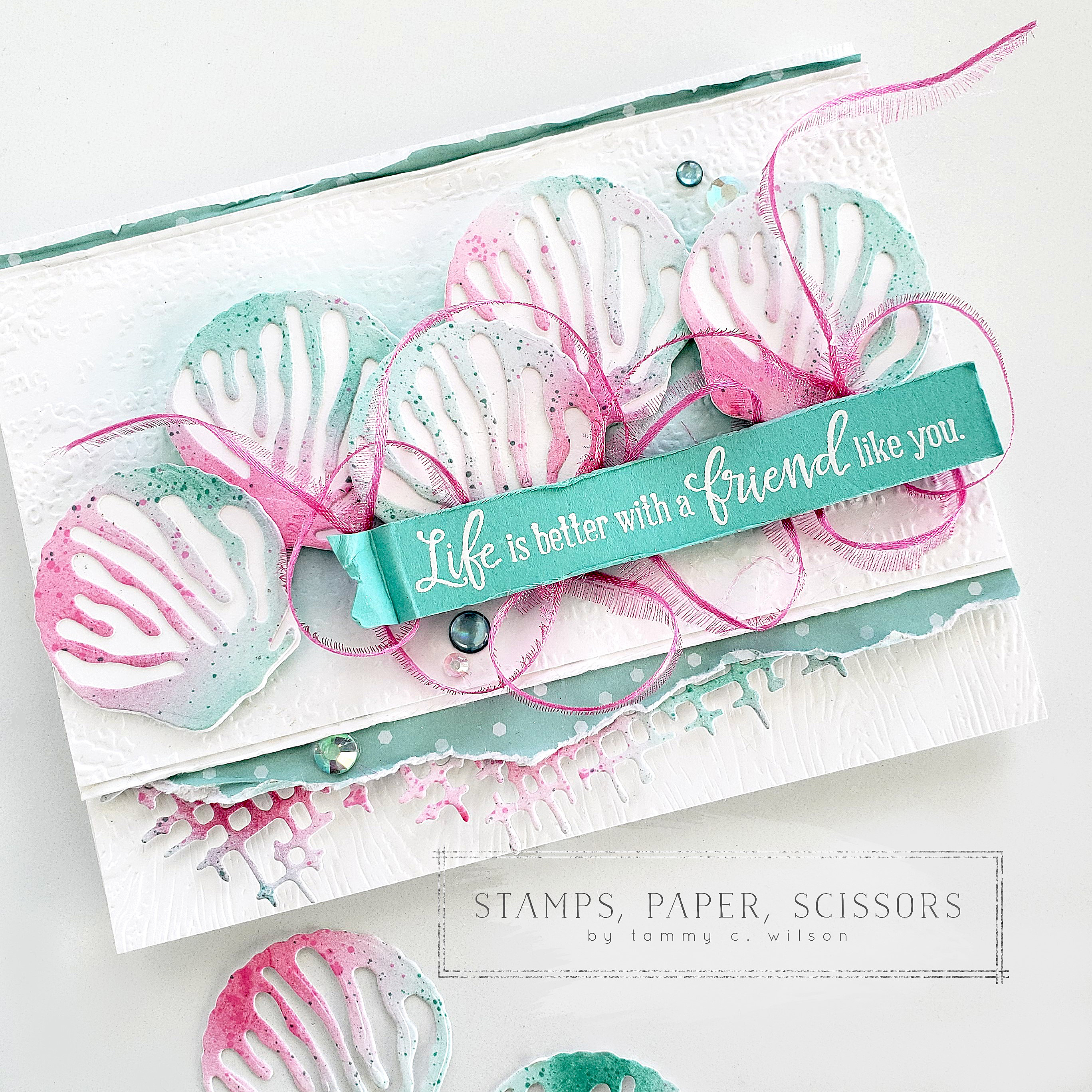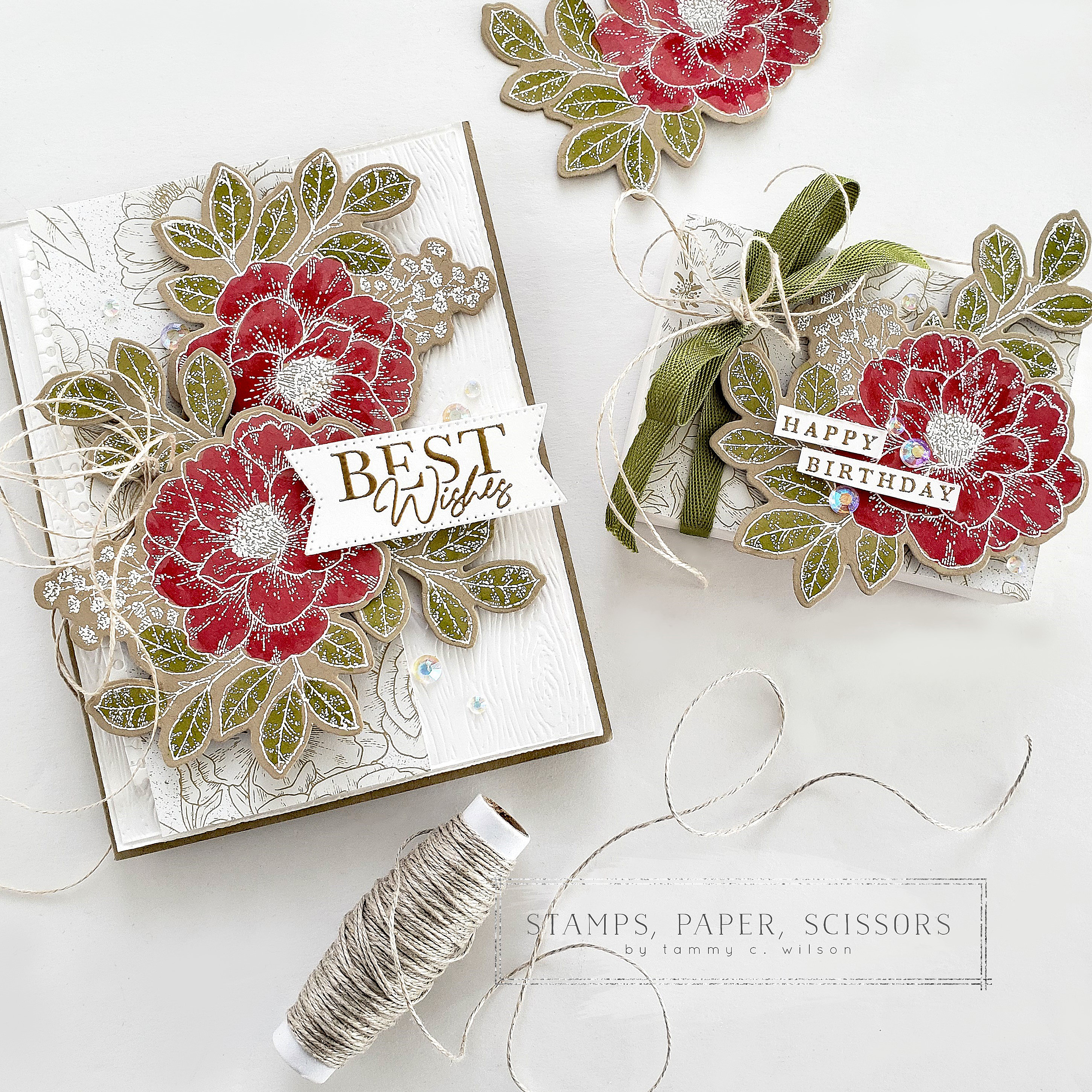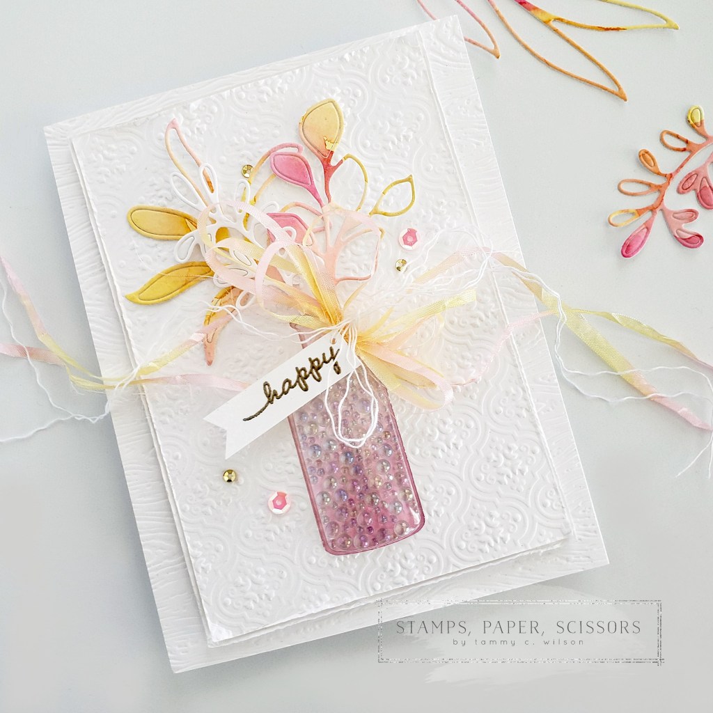 For my card, I used the Splendid Stems Dies, along with…..the Vintage Bottle Punch and Vintage Bottle Shaker Domes. I also used a watercoloring technique (…my fave technique) to create the paper that I used to die cut the stems. I hope this inspires you to use some your favorite products and techniques, as well!
