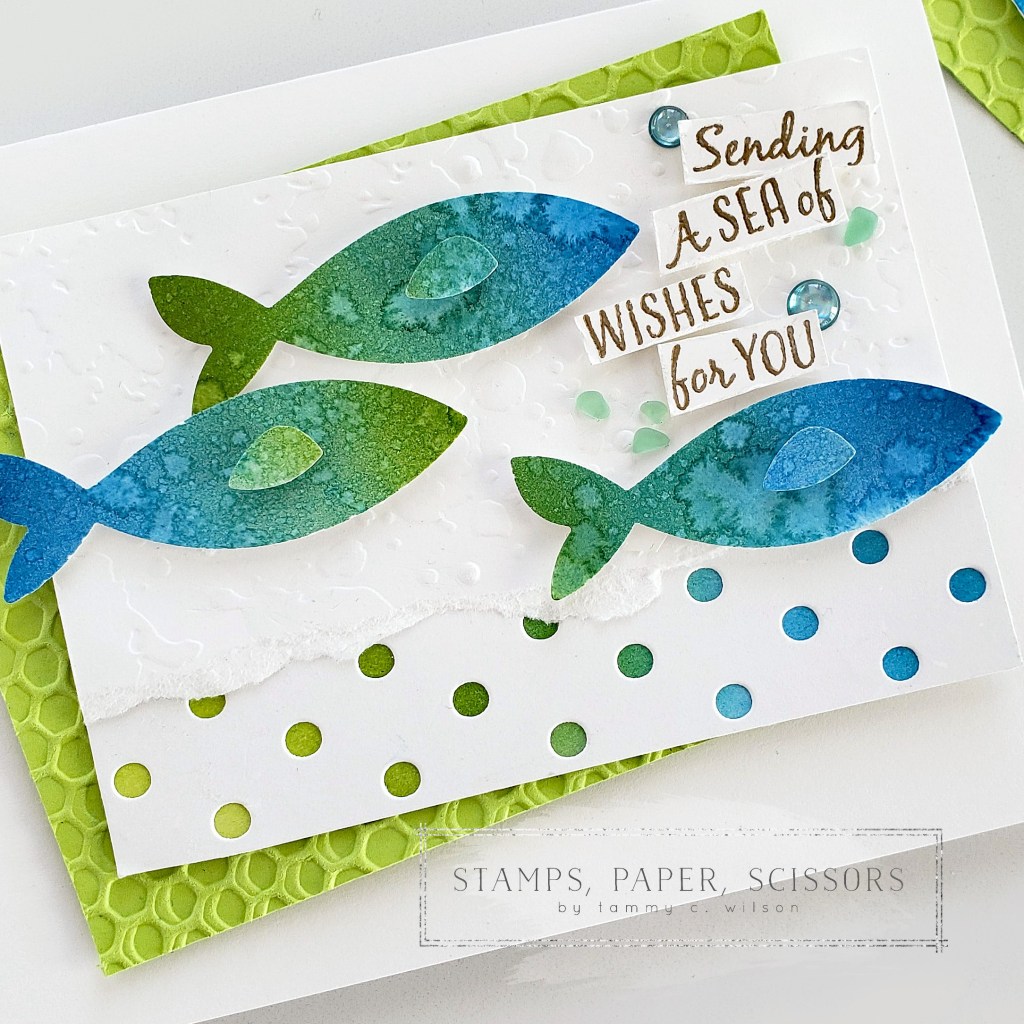 07.04.2022…..Happy Thursday, my stampin’ friends! Now that those warm summer days are here, I’m definitely feeling those “beach vibes! And…..that I just couldn’t wait to create a card with the new A Fish & A Wish Bundle! Not only does the stamp set have some wonderful images and sentiments, but the Fish Builder Punch is just perfect for punching out the cutest little fish! Hope this card inspires you to create some “beach vibe” projects as well!