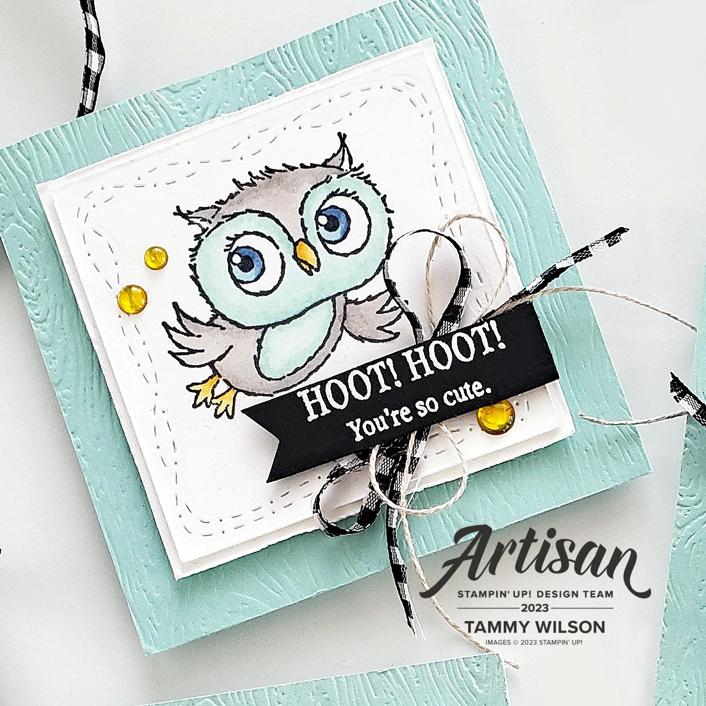 The Adorable Owls Stamp Set is one of the products that you can earn for FREE…..with a $50+ order (prior to tax and shipping).I know you’ll want to be sure and order it during this limited time promotion! Hope this card inspires you to create some cards and projects with the amazing products from the Sale-A-Bration Catalog!