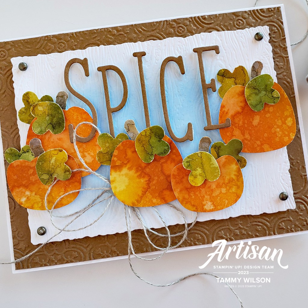 09.09.2023…..Happy Saturday, everyone! “Pumpkin Spice” season is here! I am having sooooo much fun with my fall projects, and for this card I combined the new Pick of the Patch Bundle, Alphabet A La Mode Dies, and a watercoloring technique. Hope this card inspires you to create some “pumpkin spice” inspired projects as well!