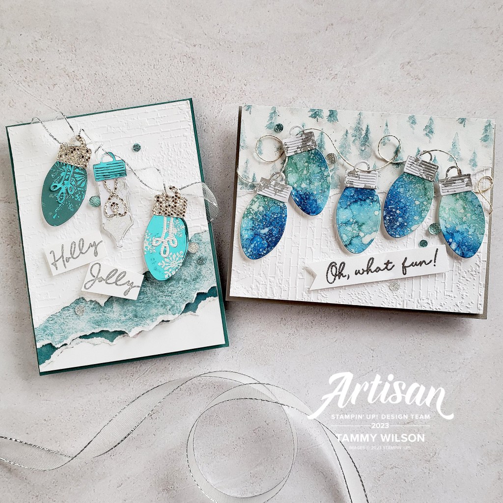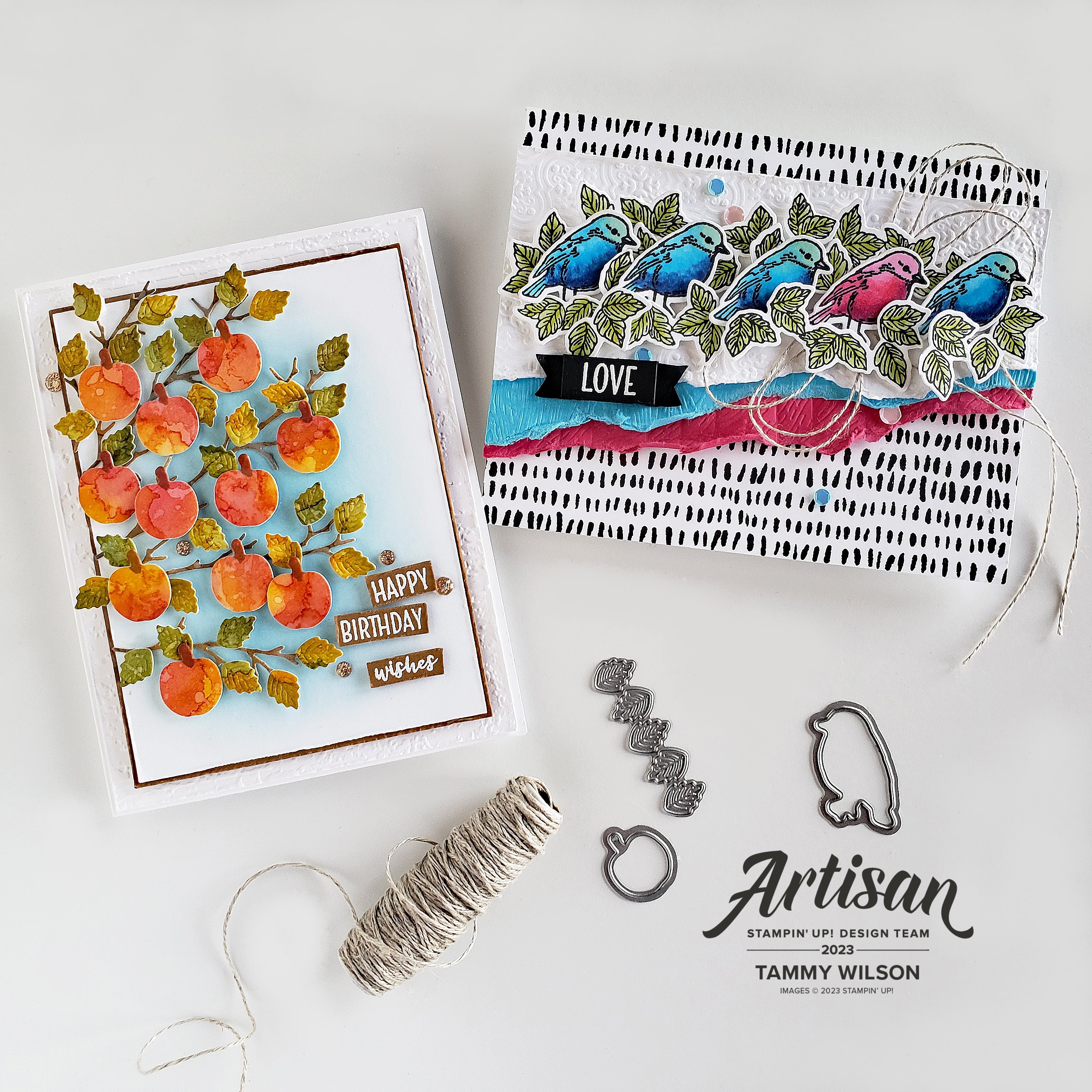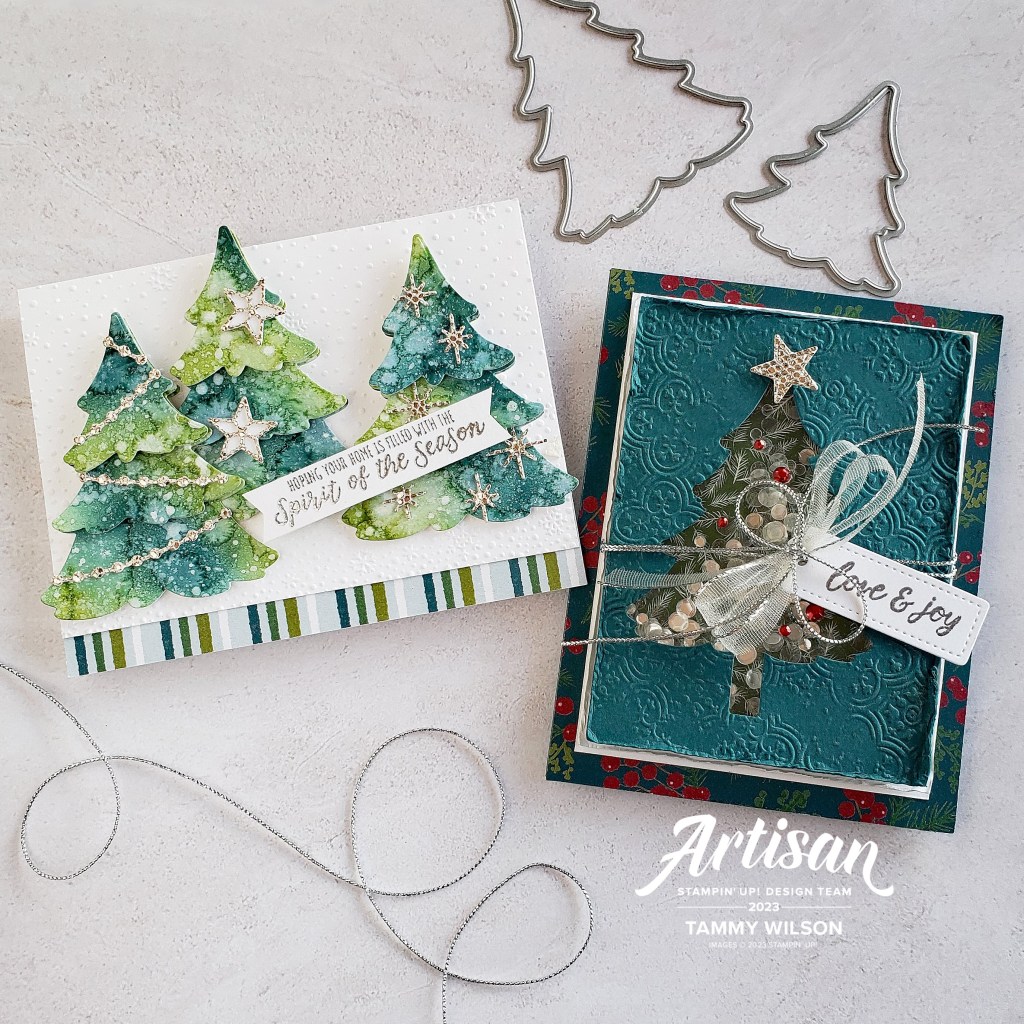 10.18.2023…..Happy Wednesday, my stampin’ friends! Today, I’m sharing my October 2023 Artisan Design Team projects, using the whimsical Merriest Trees Bundle (from the Stampin’ Up! September – December 2023 Mini Catalog), along with the Walk in the Forest Designer Series Paper. This is such a festive bundle, with wonderful images, perfect sentiments, and the perfect coordinating dies. On the “Spirit of the Season” card, I used one of my favorite watercoloring techniques. and for the “Love & Joy” card, I created a shaker card using one of the tree dies from the bundle. I hope these cards inspire you to use some of your favorite designer series paper and techniques to create some cards or projects with this fun and festive bundle!