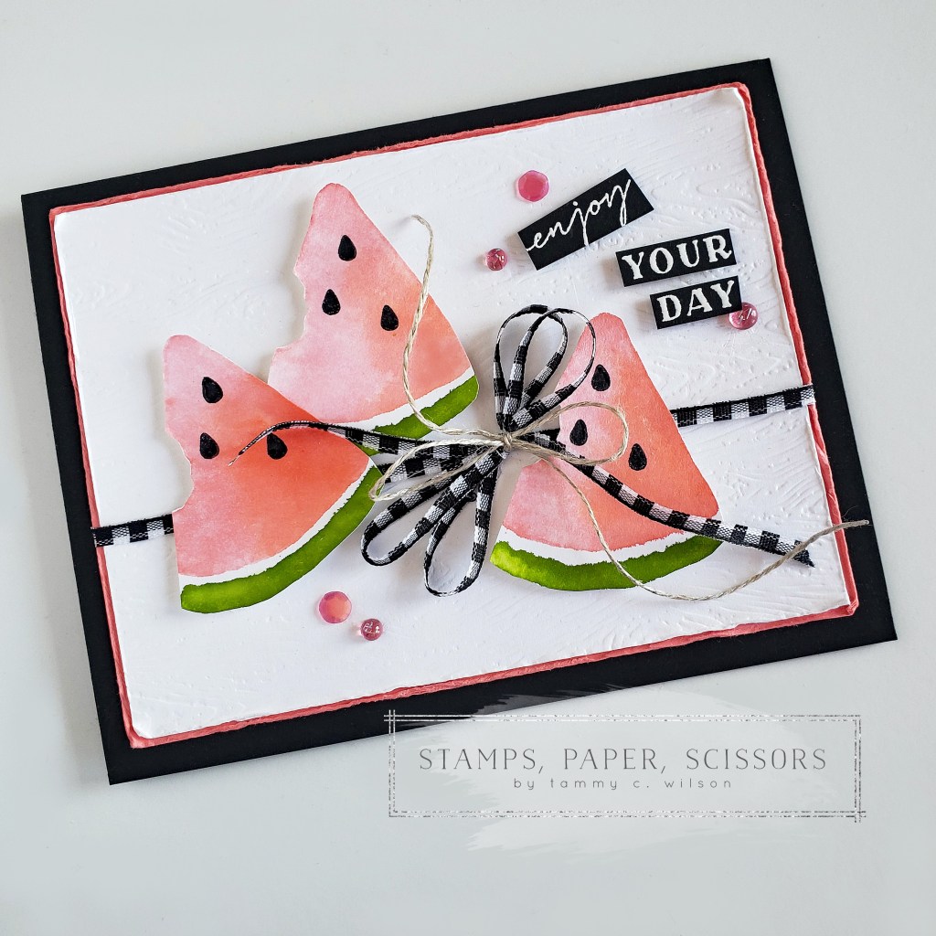 01.29.2024…..Happy Monday, my stampin’ friends! I’ve been having so much fun playing with all of the wonderful products from the current Stampin’ Up! Sale-A-Bration Catalog! And….one of my favorites is the Watercolor Melon Stamp Set. It is such a fun stamp set, and can be combined with just about any sentiment. Hope this card inspires you to create some fun, colorful projects with some of the wonderful Sale-A-Bration products!