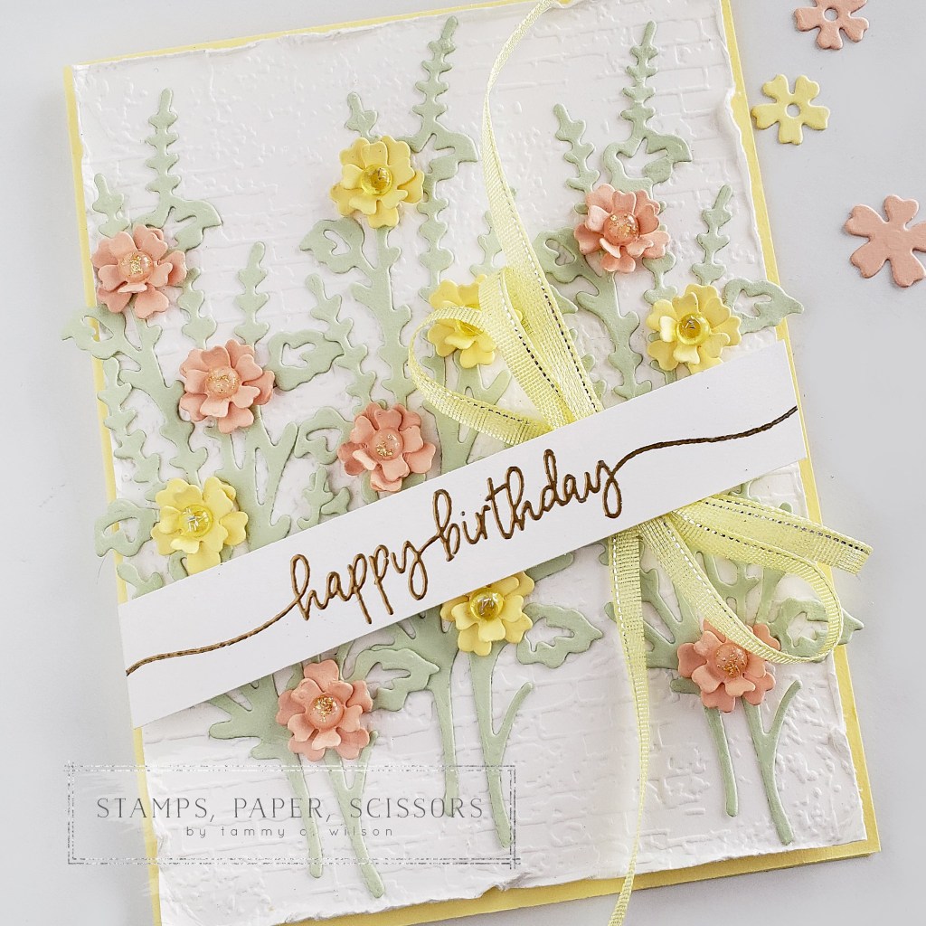 04.15.2024…..Happy Monday, my stampin’ friends! Today, I wanted to create a card with a spring vibe. So…..I decided to use the Flowers of Beauty Dies, from the new Unbounded Beauty Suite. This gorgeous collection of products will be available beginning May 1, 2024, from upcoming Stampin’ Up! 2024-2025 Annual Catalog. I also added in the Exposed Brick 3D Embossing Folder (for the background) and used the Sweetly Scripted Stamp Set for the heat-embossed sentiment. Hope this card inspires you to create a spring-themed card or project as well!