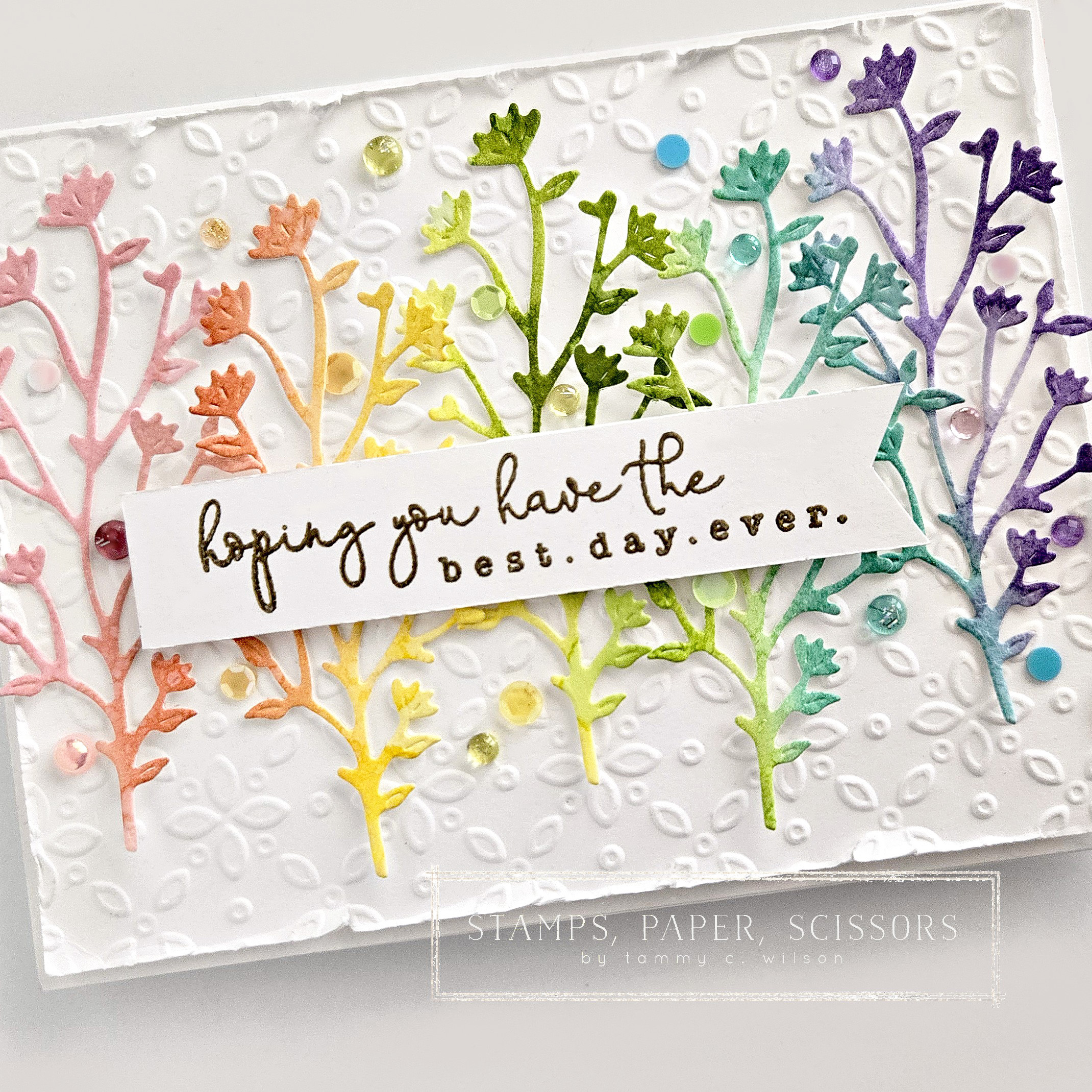 07.06.2024…..Happy Saturday, my stampin’ friends! I created the little stems on this card (using several ink colors, along with the Thoughtful Wishes Dies) a few weeks ago, but ended up not using them for the project I was working on. So…..today, I decided to finally create a card with them. Hope these cards inspire you to create a card or project using some of your leftover bits and pieces, as well!