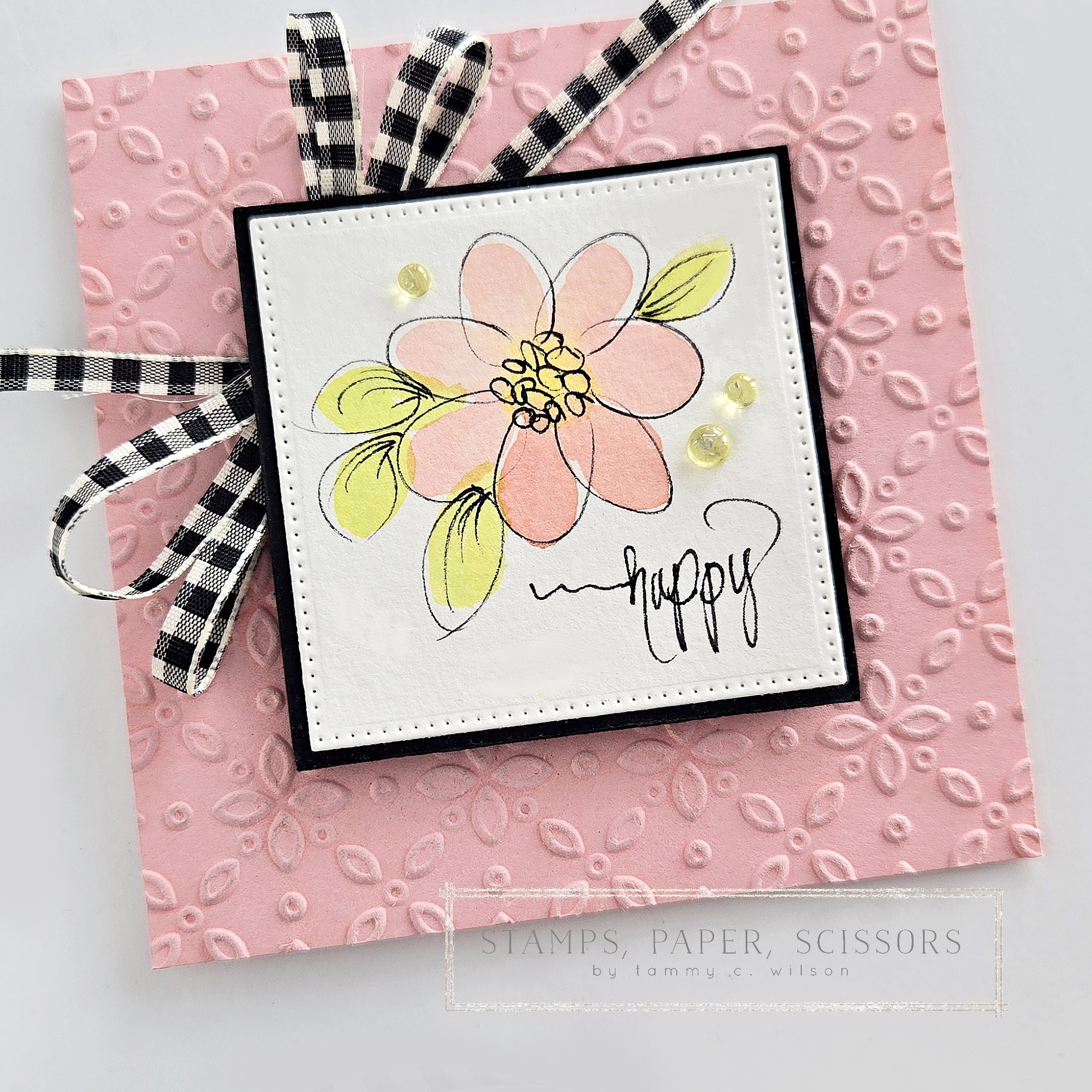 07.08.2024…..Happy Monday, my stampin’ friends! Today, I was in the mood for just a bit of watercoloring! The create the little flower, I used a Water Painter, along with Flirty Flamingo, Daffodil Delight, and Lemon Lime Twist. For the outlining and the sentiment, I used a Basic Black Stampin’ Write Marker. Hope this card inspires you to add of bit of watercoloring to your cards and projects, too!