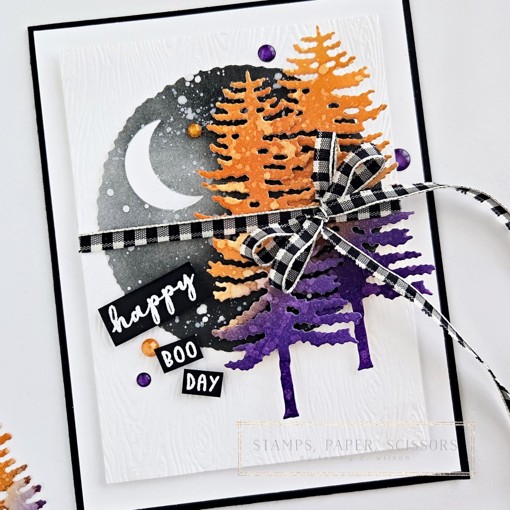 08.29.2024…..Happy Thursday, my stampin’ friends! Today, I’m sharing a fun twist on a Halloween card, using a variety of products. To create the trees, I used some leftover paper that I had created for my “BOO” card that I posted a couple of weeks ago…..along with the Forever Forest Dies. I also used the Choose Happy Stamp Set, Deckled Circles Dies, and the Timber 3D Embossing Folder. Hope this card inspires you to add an unexpected twist to your projects, using a fun mix and of products and colors.