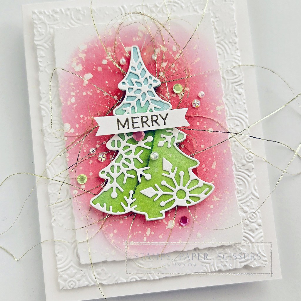 12.05.2024….Happy Thursday, my stampin’ friends! I absolutely love the Decorative Trees Dies, and I’ve been having so much fun creating lots of festive projects with them! For this card, I used Melon Mambo ink in the background to make the tree really pop! Hope this card inspires you to create a fun and festive card or project, as well!