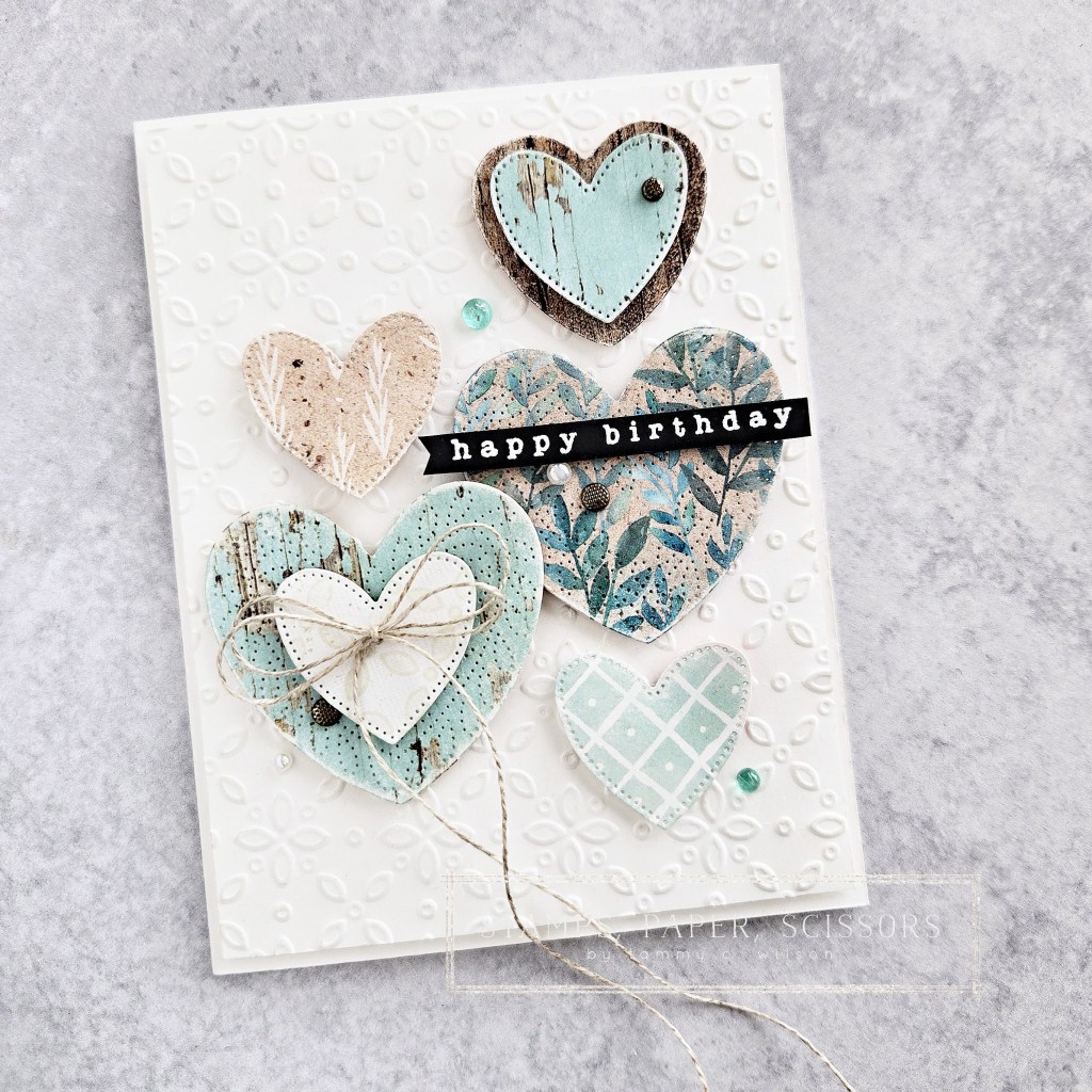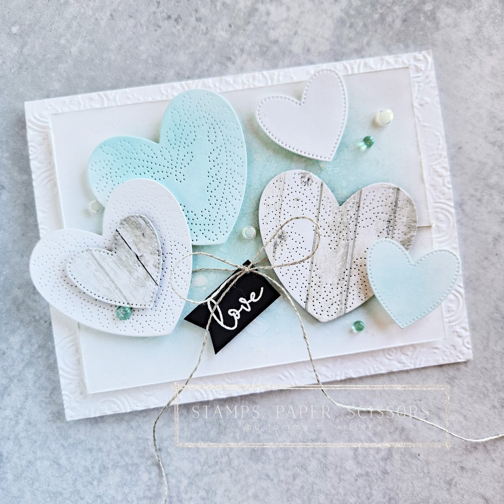 01.15.2025…..Happy Wednesday, my stampin’ friends! Valentine’s Day is just a month away, so I decided I better get started on a few cards. I also wanted to create a card with a coastal vibe. So…..for this card, I combined the Hearts of Elegance Dies, along with Coastal Cabana and the Country Woods Designer Series Paper. Hope this card inspires you to create a few Valentine’s cards and projects, as well!