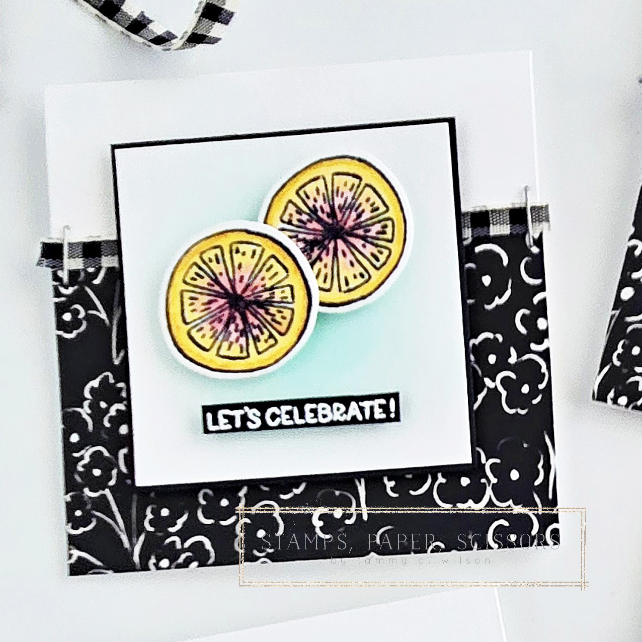 I stamped each of the images (from the Celebratory Sips Bundle) with my Tuxedo Black Memento Ink Pad. I then used the following Stampin’ Blends Marker Combo to color the images: Pretty in Pink, Flirty Flamingo, Melon Mambo, Poppy Parade, Daffodil Delight, and Granny Apple Green. Next, I cut out all of the images with the coordinating dies from the same bundle, and popped them up with Mini Stampin’ Dimensionals.
