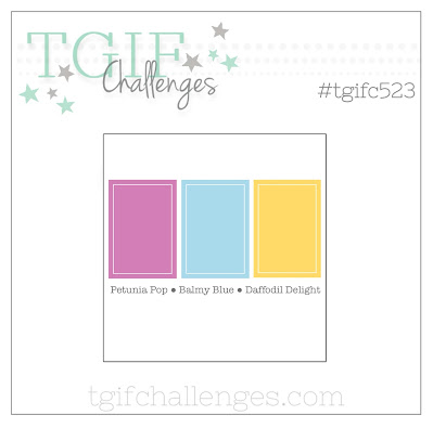 05.05.2025…..Happy Friday, my stampin’ friends! It’s already time for another TGIF Challenge! We are so glad you are joining us this week’s super fun “color” challenge…..using Petunia Pop, Daffodil Delight, and Balmy Blue! Break out that ink, cardstock, or whatever you choose using these colors!