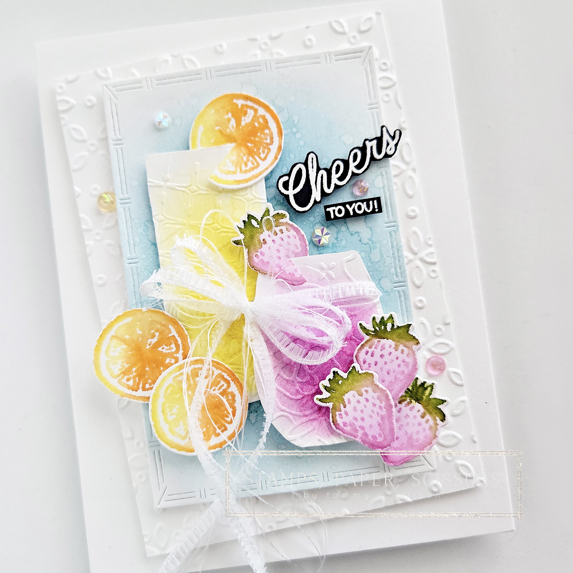 For my card, I used the new Celebratory Sips Bundle (online exclusive)…..currently available to SU! demonstrators…..and will available to customers beginning May 6th! To add color to the fruit images, I used Sponge Daubers to apply the ink to the stamps, then spritzed the stamps with water before stamping the images. Hope this card inspires you to create a card or project, using this week’s challenge! We can wait to see what you create!
