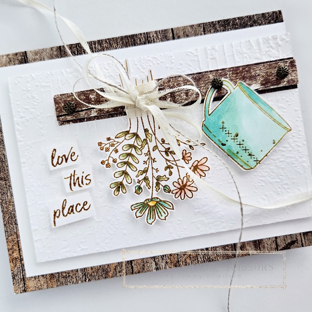 08.06.2025…..Happy Wednesday, my stampin’ friends! Today, I’m sharing a card that I created with the Weekend Adventures Stamp Set. While the images and phrases in this stamp set are wonderful for memory keeping, they are also perfect to use for cards as well. That being said, I thought this would be a fun housewarming card! I also decided to pair it with the Country Woods Designer Series Paper, and create a rustic wall rack to hang the bouquet and coffee mug. Hope this card inspires to use some of your favorite products in a fun, unexpected way as well!