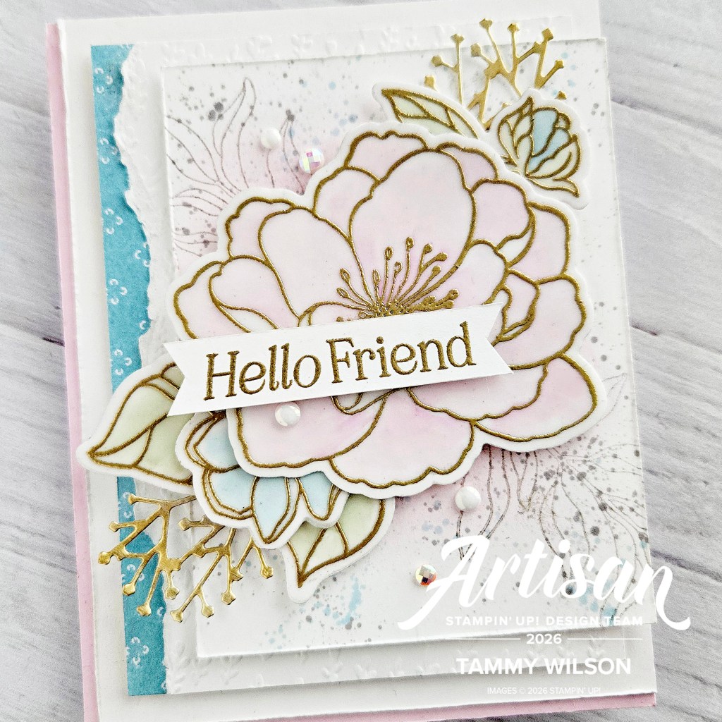 02.15.2026…..Happy Friday, my stampin’ friends! It’s already time for another TGIF Challenge! We are so glad you are joining us for another inspiring week of creativity and fun! This week’s Inspiration Challenge invites you to soak in the soft, uplifting beauty of our inspiration image, from the dreamy pink-blossomed tree and bright blue sky to the sweet “Dear Friend” sentiment tucked in the corner. Let that heartfelt greeting inspire you to create something meaningful—perhaps a friendship card, a note of encouragement, or even a scrapbook page celebrating someone special.