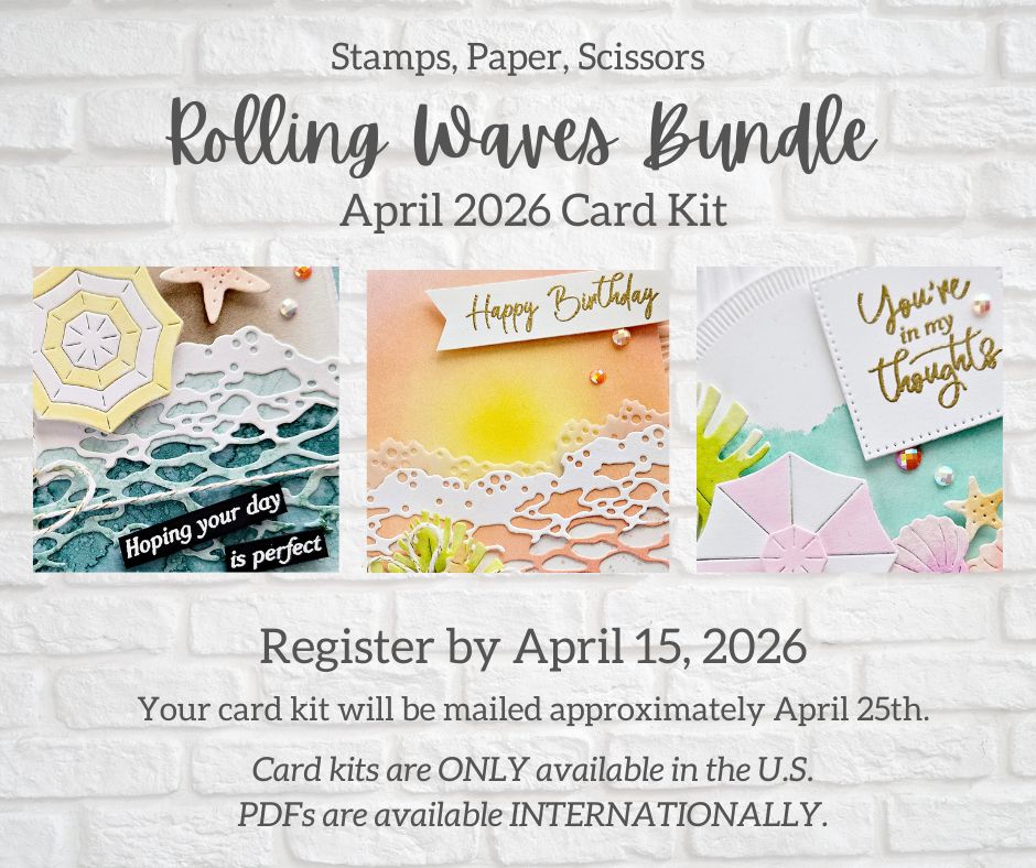04.06.2026…..Happy Monday, my stampin’ friends! Above is just a “sneak peek” for my April 2026 Card Kit. This card kit features the wonderful Rolling Waves Bundle!